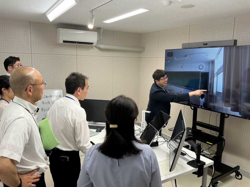 佐伯鶴城高校・日田高校への遠隔授業の様子をご見学いただき、機器の操作体験やセンターの概要説明、授業を担当する教員との意見交換等も実施しました。
